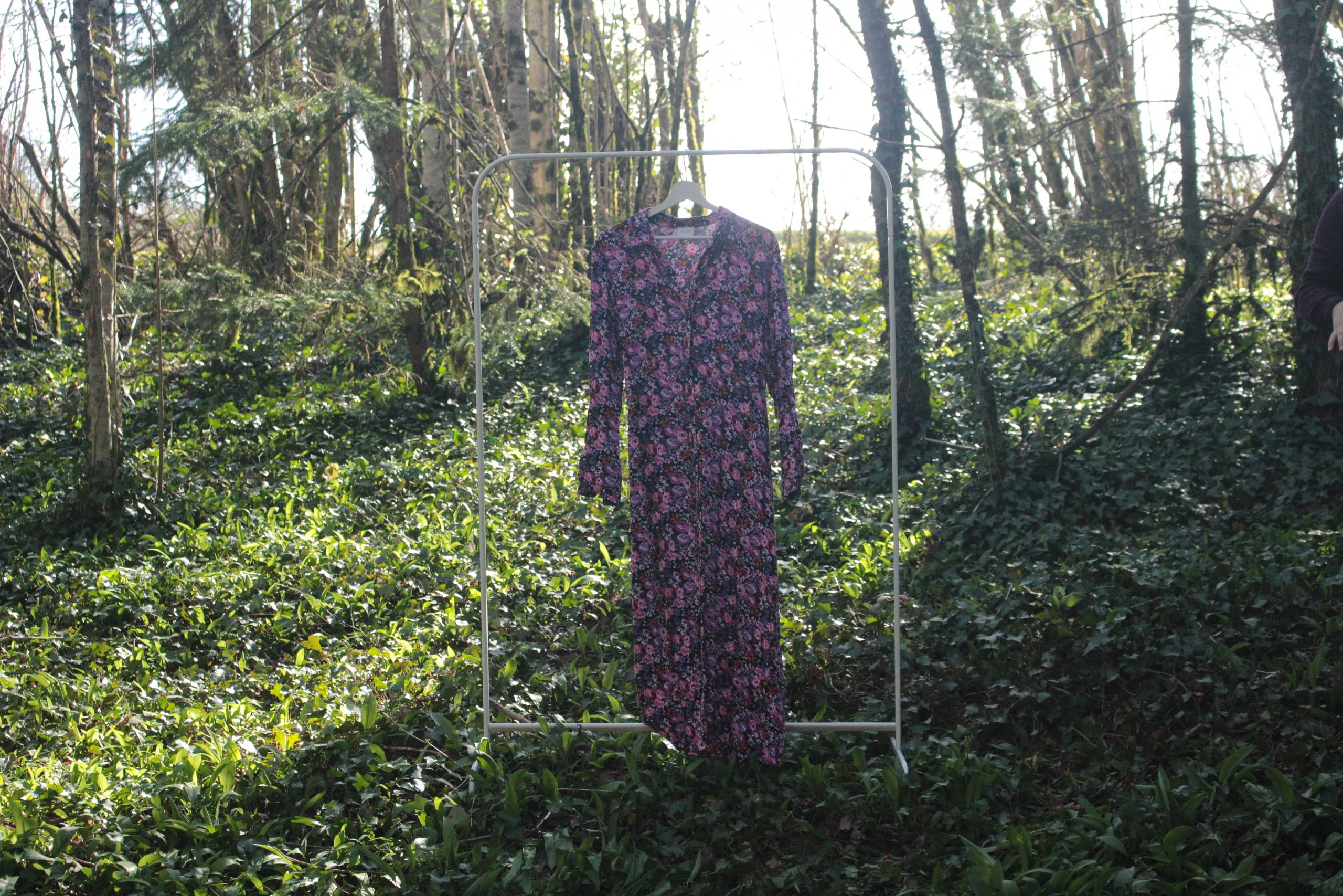 Sa coupe chemise boutonnée associée à une ceinture permet de structurer la silhouette et d’ajuster la taille selon l’effet souhaité.