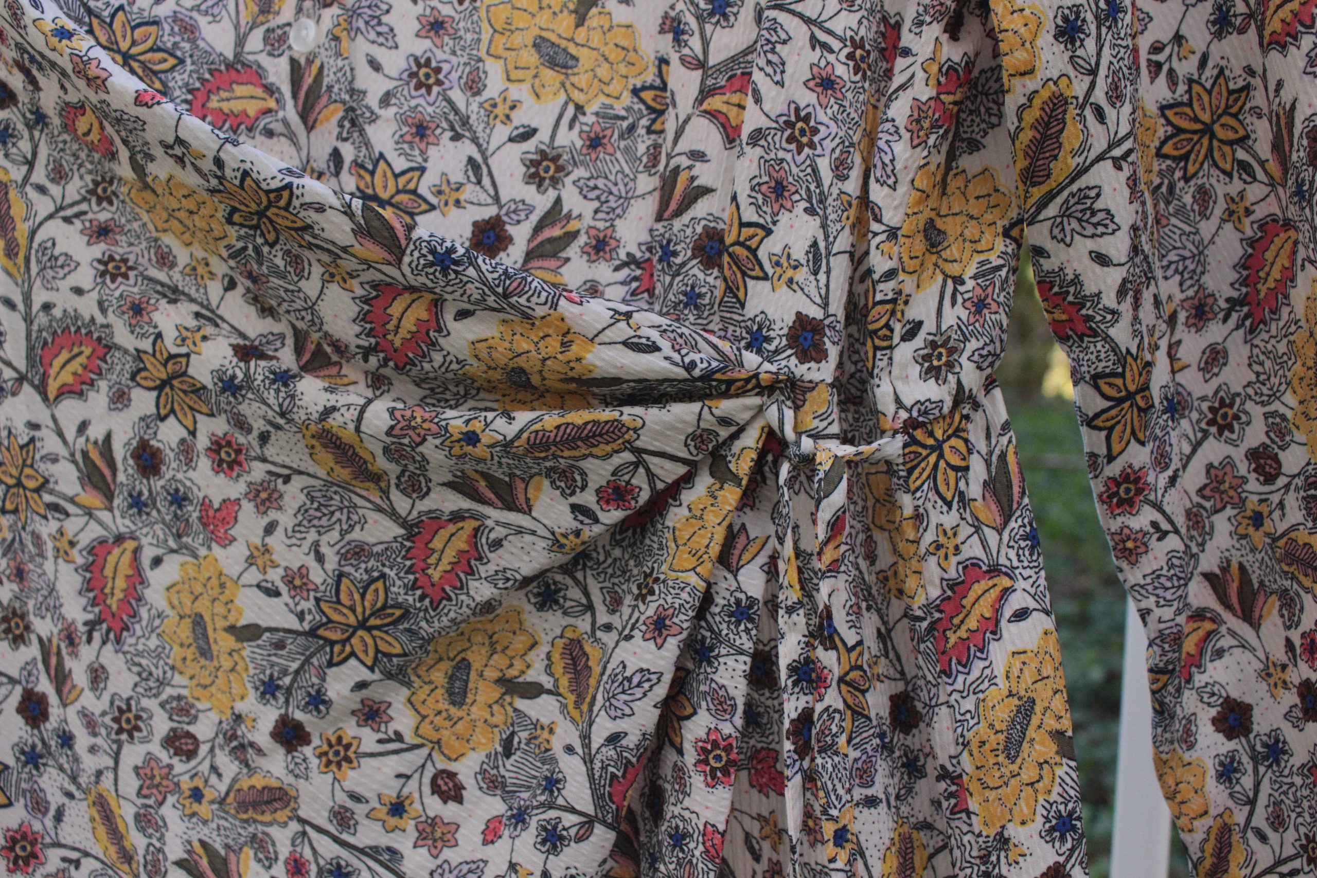 Cette robe Bonobo est une pièce pleine de caractère avec son imprimé floral et feuillage aux teintes chaleureuses et élégantes.