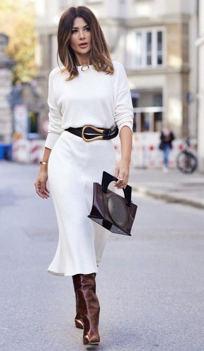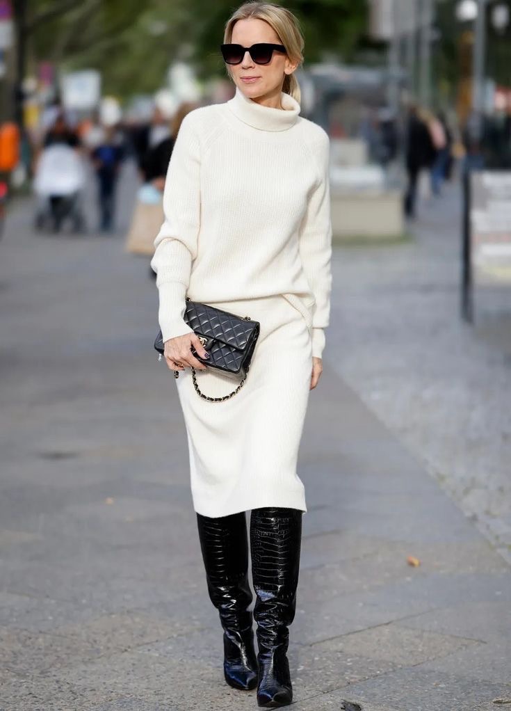 Pour les minimalistes : Une Robe pull ajustée, des bottes hautes, et voilà, la simplicité devient élégance.